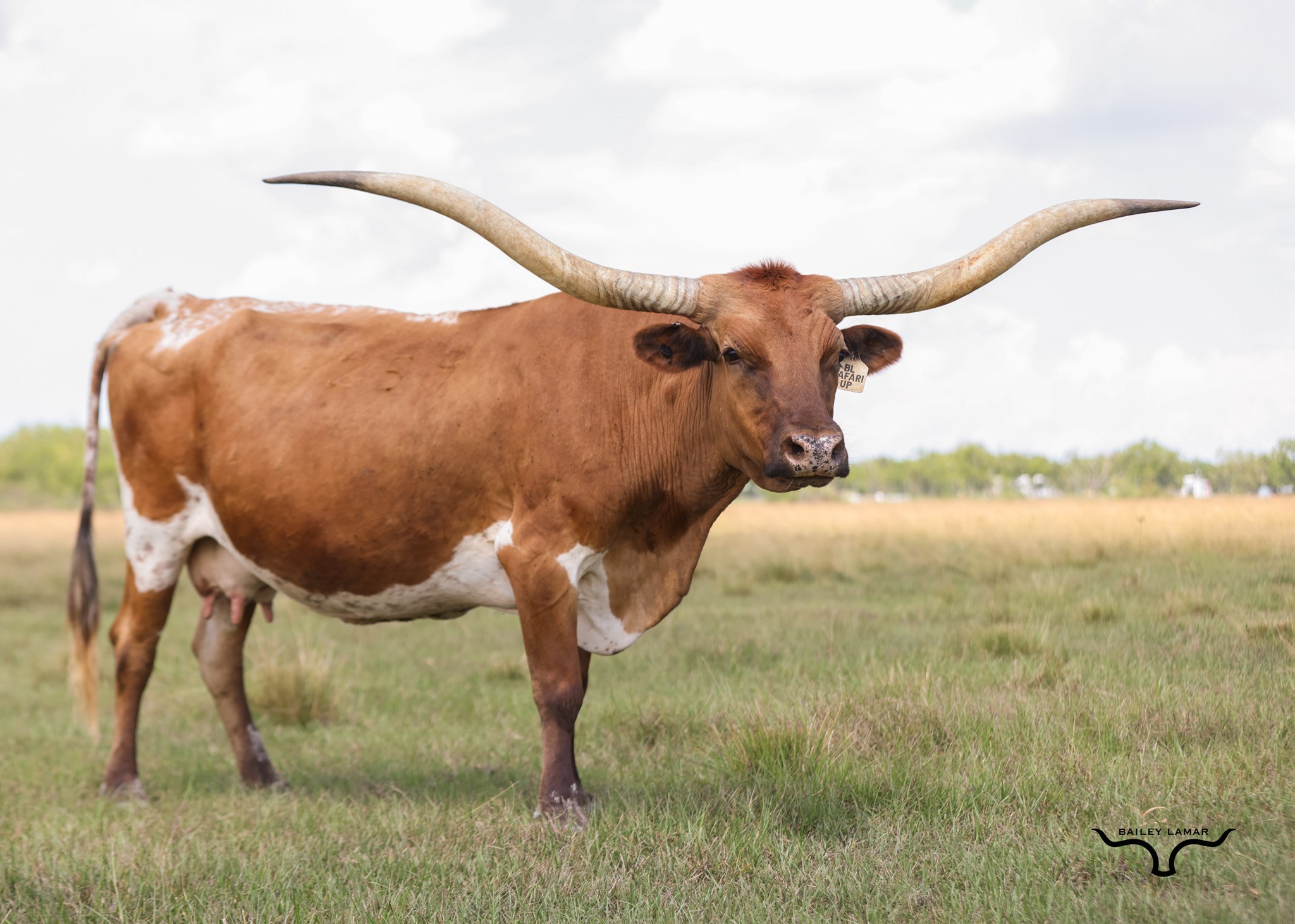 Some cows are good & some just know they are great! Beautiful horn direction! Calm cool as ice deposition, and a legendary pedigree! Along with being a great cow with excellent milking ability makes her a star at any ranch!